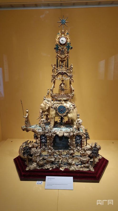 铜镀金象驮转花钟(央广网记者 邬眉 摄)