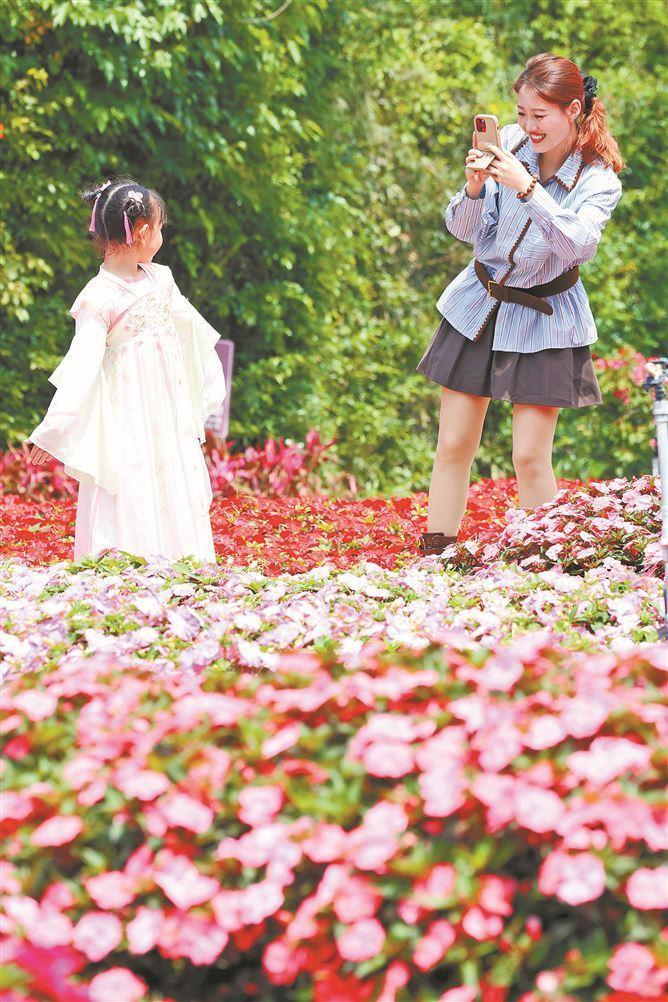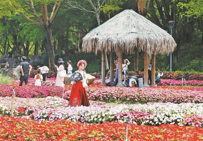 清明假期,厦门园博苑花团锦簇,在空明桥花田,4万株新几内亚凤仙竞相盛放,六种颜色的鲜花形成锦绣花海,吸引众多市民游客踏春赏景。漫步花海,仿佛行走在巨大的调色盘中,许多游人身着古风服饰前来打卡,留下春日美好记忆。(记者 吴海奎)