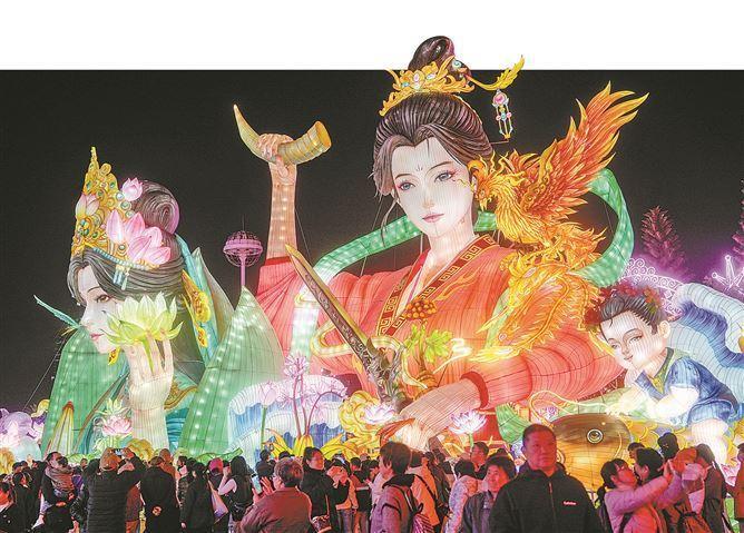 提前在春节前登场的“厦门园博苑灯会”融合了海洋文化、闽南地域特色和中国传统灯彩工艺,打造“山海神画”“海峡珍珠”等9大主题板块,呈现连贯展开的沉浸式夜游体验。尤其是夜幕降临后,灯组与水面倒影相互映照,形成横贯水域的光影长卷,让人们在光影流转间感受新春的热闹与浪漫。从正月初一开始,入园游客数一路攀升,单日人次均突破1.5万,其中正月初三当晚的瞬时最高客流量超过9000人。