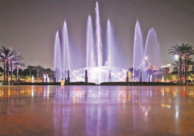 鼓浪屿之波、筼筜渔火、金砖合作、海上丝绸之路……春节期间,白鹭洲公园白鹭女神像灯光秀和音乐喷泉每晚准时上演。(记者 卢剑豪 吴海奎摄)