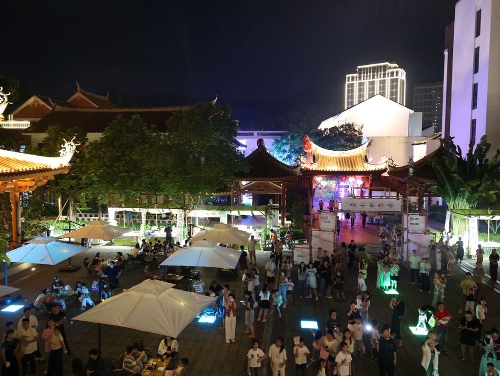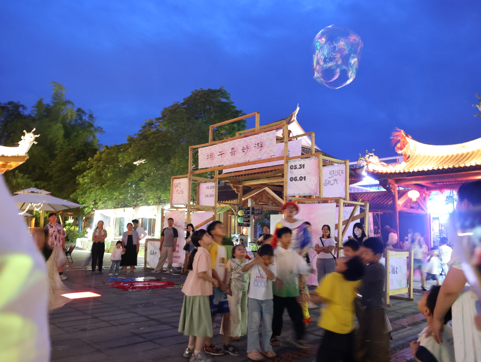 与此同时,城区溪禾山的客流量也显著增长。此次假期,溪禾山推出了“秋野奇境·茶山月夜”主题活动,包括大地艺术展、天台音乐会、篝火晚会和博饼等项目,其中尤为引人注目的则是高空矩阵项目。