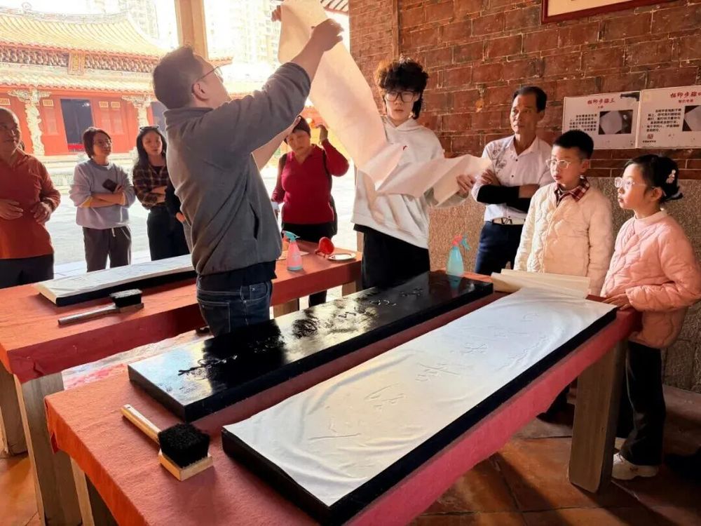 凤山书院博物馆在春节期间化身为非遗技艺的活力展场。正月初一上午,“金箔画迎新年”主题活动也在举办。游客们用胶水勾勒图案,贴上闪亮金箔,亲手制作出一幅幅精美的新年金箔画。来自厦门的游客张薇专注地完成她的第一幅“福”字作品:“小时候听爷爷讲过金箔画,但从未亲手做过。这个春节假期长,正好可以静下心来学习传统手工艺。”