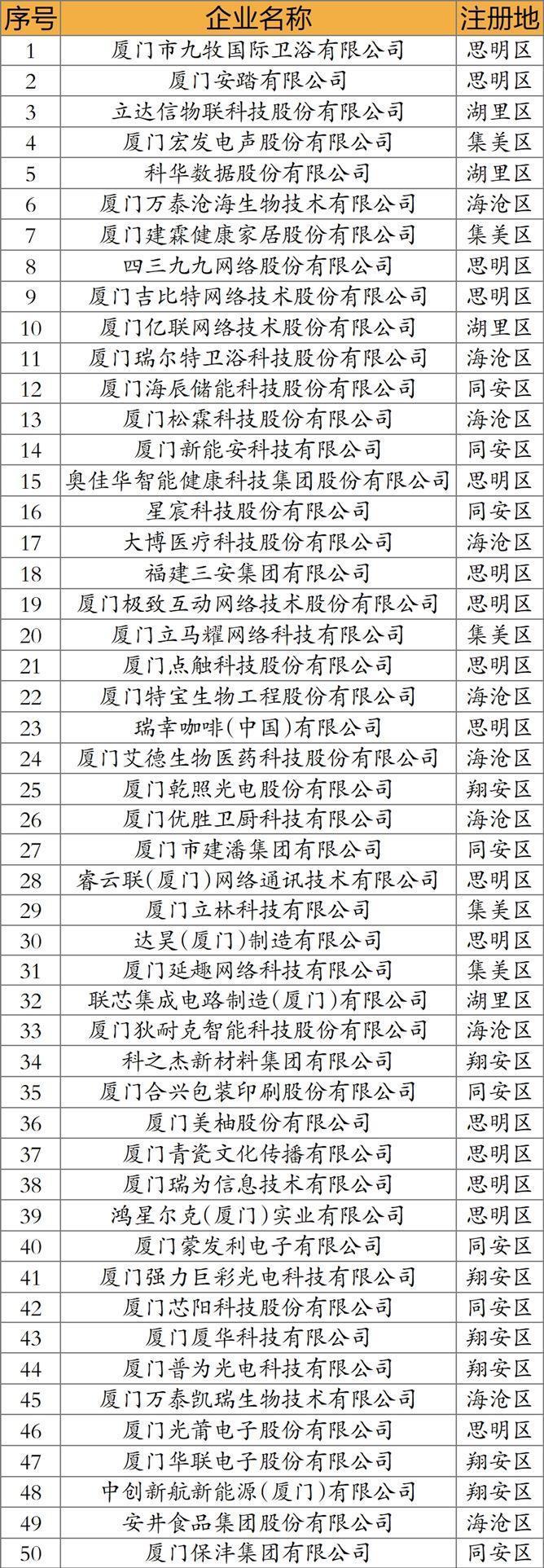 2025厦门市民营企业科技创新50强榜单