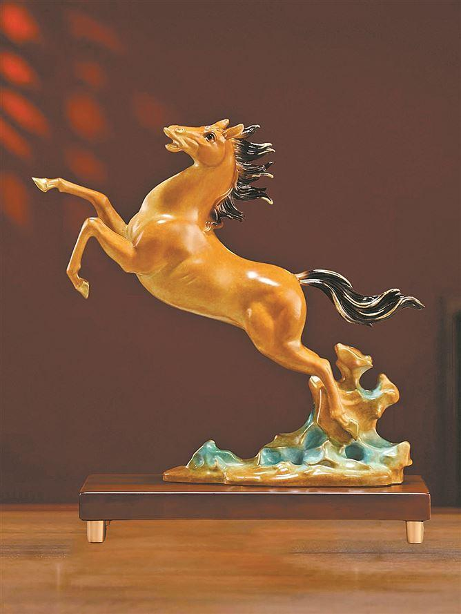 踏入展厅,55尊形态各异的铜艺骏马映入眼帘,有的骏马鬃毛飞扬、昂首嘶鸣,有的作品奋蹄疾驰,肌肉线条饱满有力,动感十足……每尊铜马神采毕现,彰显民间艺人精湛的锻造技艺。